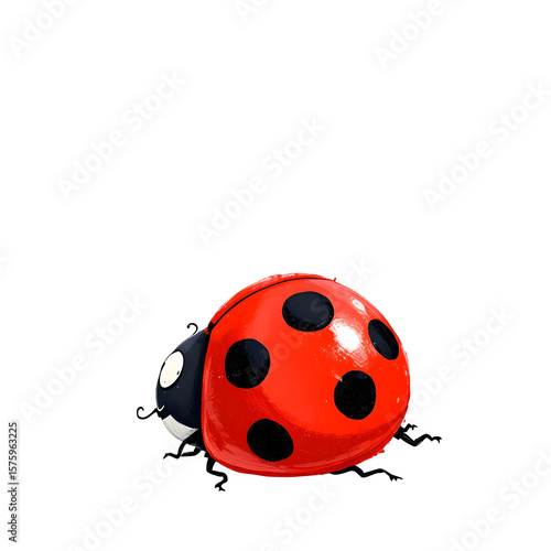 A charming red ladybug with black spots is depicted on a plain transparent background, presented in a cute, illustrative style