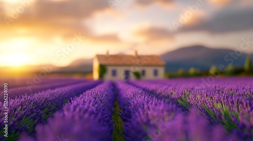spring, provence, lavandula, field, bloom, rustic, bungalow, stone, landscape, gold, light, warm, charming, flower, nature, scenic, countryside, fragrance, beauty, tranquil, pastoral, sky, sunshine