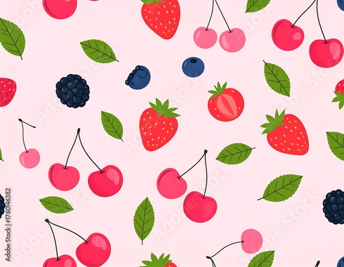 berry, berry, fruit, food, strawberry, cherry, blueberry, blackberry, leaf, green, red, pink, sweet, pattern, delicious, fresh, organic, summer, healthy, garden