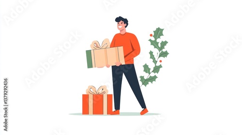 gift, wrapping, festive, holiday, celebration, present, bow, ribbon, joy, happiness, season, winter, christmas, new year, party, event, decoration, holly, leaf, red berry, black pants, shoe, indoor, lifestyle, people, emotion, smile, fun, creativity, design, illustration, art, vector, graphic, modern, minimalism, concept, idea, marketing, advertising, web, blog, article, greeting card