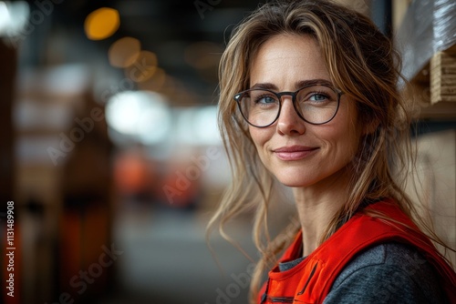 people, smiling, portrait, caucasian, middle-aged, female, woman, professional, occupation, work, logistic, industry, employee, uniform, confident, dedicated, job, career, mature, strong, responsible, empowered, skilled, efficient, emotion, equipment, dependable, technology, inventory, warehouse, workplace, storage, organisation, life events, hard-working, productivity, industrial, safety, labor, happy, modern, teamwork, senior, 1, copy space, blue-collar