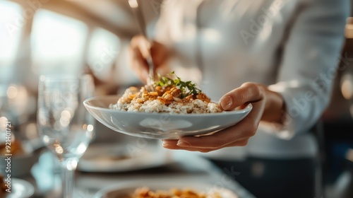 chef, epicure, dish, rice, garnish, serving, eatery, dining, food, culinary, cookery, luxury, meal, elegance, preparation, professionalism, artistry, freshness, plating, high-end, modern, appetence, taste, ingredient, presentation, kitchen, cooking, premium, upscale, delicacy