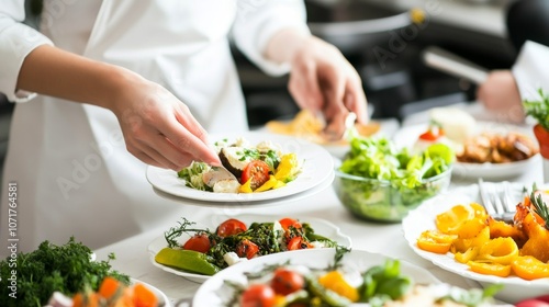 food, cooking, chef, meal, kitchen, eatery, cook, preparation, plate, dish, hand, cookery, delicious, vegetable, healthy, professional, fresh, man, meat, ingredient, tasty, dinner, table, uniform, culinary, prepare, person, people, occupation, epicure, background, closeup, preparing, sauce, cooked, service, profession, work, white, seafood, dining, garnish, woman, lunch, illustration, cafes, making, business, fine dining