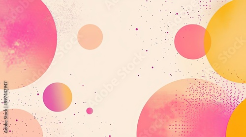 A chic abstract background with pink and yellow gradations, featuring minimalist circles and Memphis design influences for a trendy, modern feel.