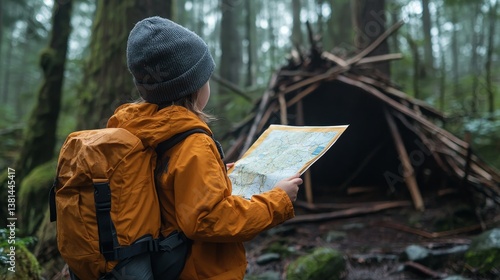 A child explores the forest with a map, showcasing adventure and nature connection.