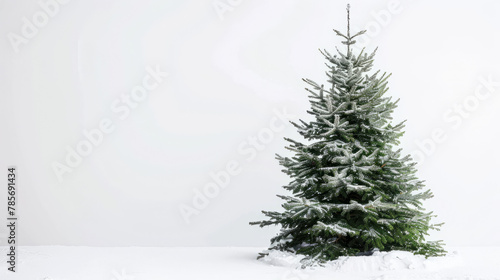 A Christmas tree under the snow on a white background, Generative AI