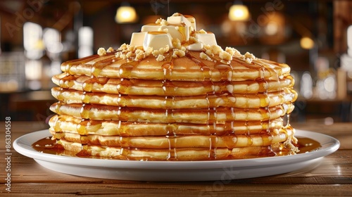 sirup, butter, nut, breakfast, brunch, plate, white plate, food photography, cosy, delicious, stacked, maple syrup, buttered, rustic, comfort food, morning, baked goods, tempting, layered, sweet, appetising, mouth-watering, indulgent, homestyle, closeup, dining table, garnished, hearty, savoury, decadent, nutty, detailed, eatery
