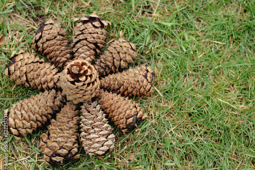 pine cone, circle, decoration, pine, cone, grass, nature, brown, fir, conifer, closeup, green, christmas, forest, tree, cone