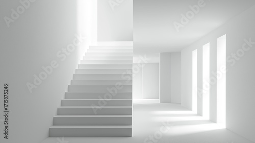 A clean minimalist staircase disappearing into white space.