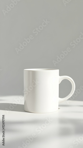 mug, cup, white, ceramic, porcelain, minimalist, design, simple, clean, empty, background, grey, shadow, light, soft, still, life, modern, aesthetic, photo, studio, template, blank, product, image, isolated, object, kitchen utensile, home, decor, style, concept, scene, illustration, graphic, branding, marketing, advertising, presentation, visual, element, texture, surface, shape, colours, contrast
