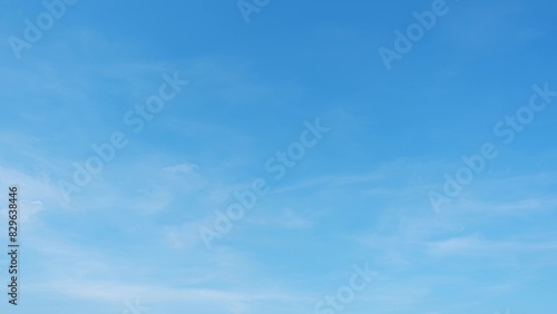 A clear blue sky with a few faint, wispy clouds. The sky is bright and expansive, suggesting a calm and pleasant day with excellent visibility. Horizon background.
