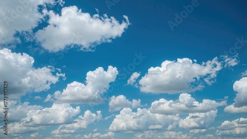 sky, blue, clear, fluffy, white, cloud, scattered, horizon, atmospheric, serene, tranquil, natural, weather, daytime, scenic, peaceful, airy, open, picturesque, calm, huge
