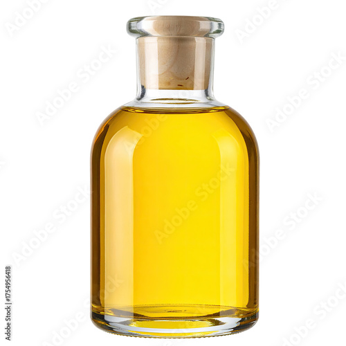 bottle, glasses, liquid, gold, cork, oil, amber, container, clear, opaque, isolated, black, background, smooth, curved, rounded, vessel, chemistry, laboratory, potion, elixir, vintage, antique, elegant, simple, design, shape, fullness, texture, surface, bright, light, shadow, detail, closeup, side, view, photo, studio, food, drink, supplement, natural, ingredient, healthy, nourishment, pure