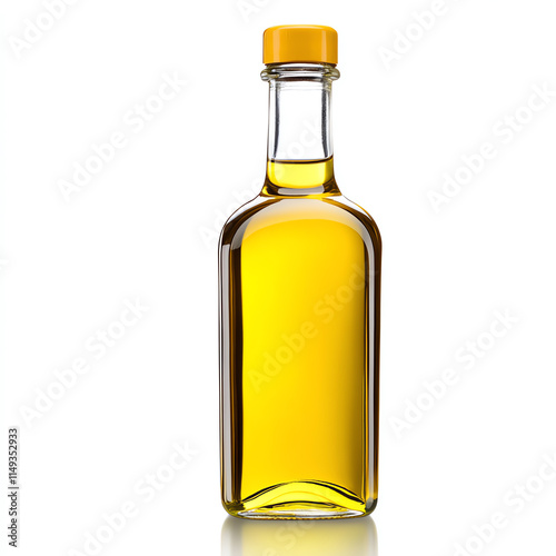 A clear glass bottle filled with golden oil, perfect for culinary use and presentations.