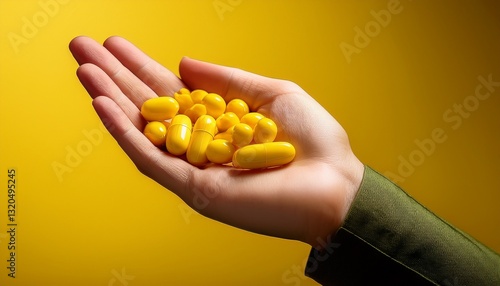 a close up shot of a hand holding vibrant yellow pills against a bright backdrop symbolizing health vitality and the importance of medication in our lives