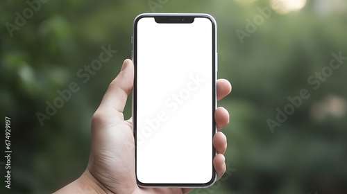 A Close-up of a Hand Holding a Smartphone with an Empty Screen Mockup