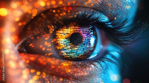 eye, colours, technology, vibrant, innovation, datum, pattern, creative, imagination, styled, shimmer, concept, insight, artwork, texture, shadow, binary, nature, brightness, detail, convey, macro, beauty, artistic, design, mystery, high-coloured, iris, sharpened, science, symbolize, cyberspace, human, neural, perception, vision, shiny, pupil, visual, expressive, cyber, canvas, sparkle, modern, abstract, realism, experiencing, emotion