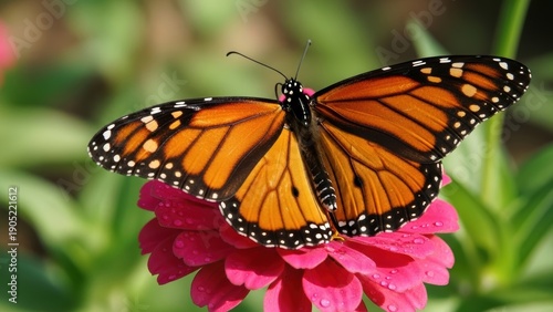 butterfly, monarch, flower, nature, insect, orange, beautiful, garden, summer, pink, wildlife, macro, wing, pollination, colourful, vibrant, beauty, delicate, closeup, flora, fauna, bloom, dew, dew-drop