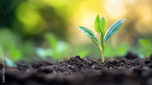 A close-up of a sapling emerging from the ground, representing new growth and the cycle of life.