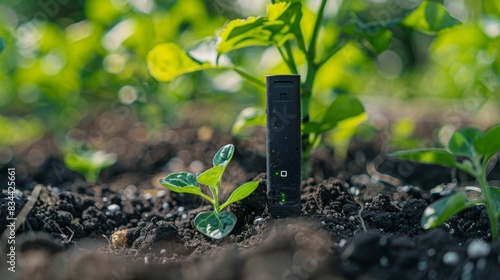 closeup, small, sensor, measuring, dirtied, transmitting, datum, monitoring, system, agriculture, concept, robotic, tech, modern, digital, automation, futuristic, app, application, harvesting