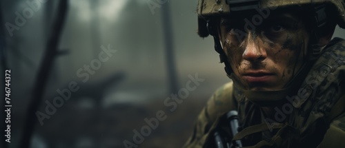 A close-up portrait of a soldier
