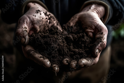 A close-up shot of a farmer's hand holding a handful of healthy, nutrient-rich soil, AI generated