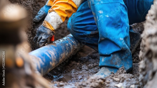 closeup, shot, plumber, repairing, underground, water, pipe, city, infrastructure, project, pipe, repair, scene, practical, precise, style, photo, expertise, efficiency, municipal, plumbing, maintenance, high, quality, image, dependability, public, service