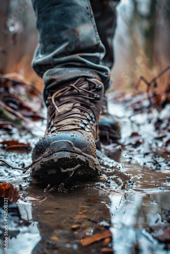 shoe, water, puddle, footwear, person, foot, wet, rain, splash, nature, environment, ground, calm, serenity, peaceful
