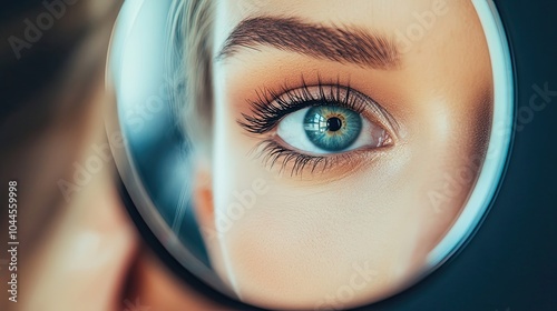 A Close-Up View of a Blue Eye Reflecting in a Mirror