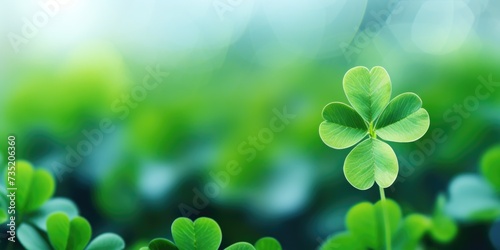 A close-up view of a four leaf clover, a symbol of good luck. Can be used to represent luck, fortune, or St. Patrick's Day celebrations