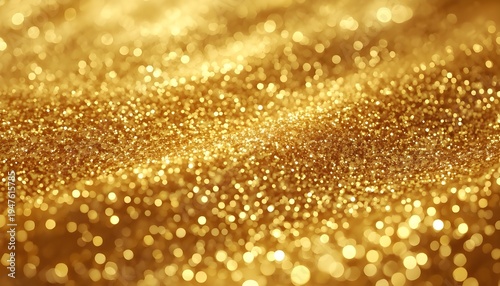 A close-up view of a sparkling gold glitter background with a vibrant and luxurious texture.