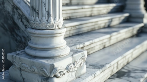 A close-up view of elegant marble columns and steps, showcasing classical architecture and design.