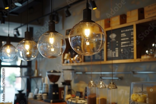 A cluster of lights hanging from a ceiling. Ideal for interior design projects