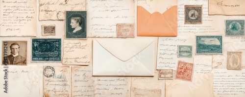 A collage of old letters, stamps, and postcards from different eras, collage, letters, vintage