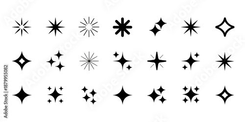 star, sparkle, icon, icon, illustration, black, white, monochrome, minimal, minimalist, design, graphic, symbol, silhouette, outline, flat, shape, decoration, celestial, night, twinkle, shine, glow, magic, fantasy, cosmic, universe, astrology, horoscope, collection, set, assortment, grid, layout, pattern, isolated, background, simple, clean, universal, element, vector, geometric, aesthetic, light, brilliance, mystical