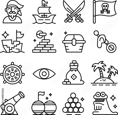 pirate, ship, sword, flag, skull, treasure, chest, bike, castle, sand, palm, eye, bag, cannon, ball, pearl, robot, diamond, sparkle, wheel, monocle, illustration, drawing, line, art, graphic, design, icon, symbol, adventure, sea, ocean, island, tropical, fun, playful, cartoon, simple, minimalistic, black, white, background, paper, texture, digital, creative, imagination, fantasy, fiction