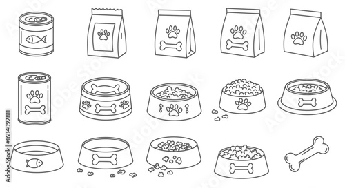 animal, vector, icon, dog, pet, outline, cat, illustration, bowl, food, design, puppy, care, black, graphic, symbol, line, isolated, set, eat, collection, eat, meal, simple, bone, feeding, dish, snack, paw, canino, flat, signs, doodle, white, background, nourishment, stroke, app, healthy, web, toy, pile, cartoon, cute, vignetting, bag, veterinary, shadow, ravenous