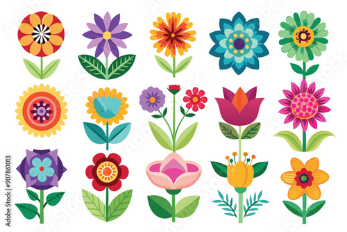 A Collection of Colorful and Stylized Flowers