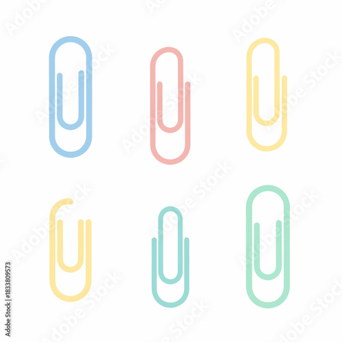 paper clip, clip, office, supply, stationery, metal, fastener, document, organisation, binder, attach, hold, secure, tool, equipment, item, object, design, graphic, illustration, vector, art, simple, minimalist, clean, modern, isolated, white, background, blue, pink, yellow, green, pastel, colours, set, group, collection, row, arrangement, flat, icon, symbol, shape, outline, loop, wire, steel, work