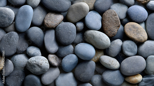 A collection of smooth stones featuring various shades and shapes arranged closely on a flat background