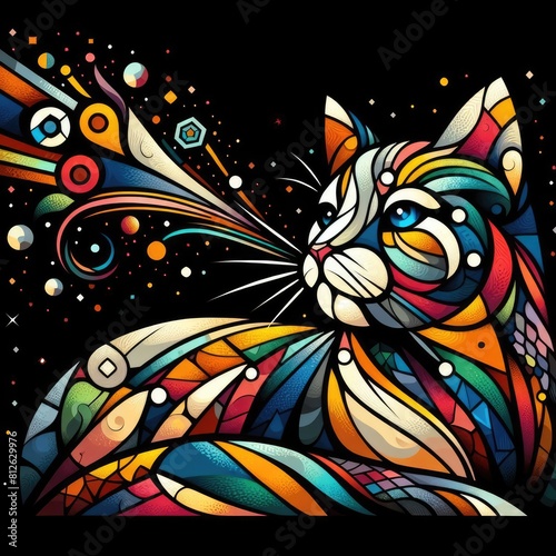 A colorful cat with a spout of water realistic used for printing card design illustrator.
