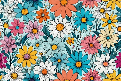seamless, floral, flower, pattern, spring, summer, background, texture, wallpaper, vector, retro, garden, design, illustration, nature, blossom, abstract, vintage, textile, decorative, leaf, beauty, fabric, ornament, daisy, pink, white, repeat, romantic, art, colourful, pretty, yellow, cute, blue, flora, botanical, graphic, bloom, print, modern, plant, bright, small, bouquet, fashion, green