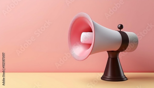 A colorful megaphone rests against a pastel background, showcasing a blend of modern design and classic functionality.