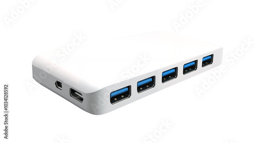 A compact USB hub with multiple ports isolated on a transparent background, PNG