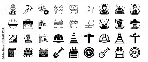A comprehensive collection of construction and worker icons, perfect for design projects related to labor, industry, and building.