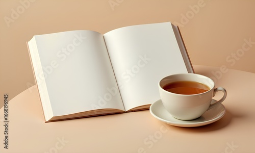 desk, office, workspace, flat, lay, top, view, notebook, open, blank, page, brown, background, hot drink, latte, cup, mouse, computer, business, professional, modern, organised, minimal, plant, sunglasses, pen, wood, planner, journal, study, student, freelancer, creative, work, from, home, tech, supply