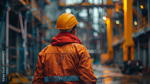 A construction worker or foreman at a construction site.Worker ponders construction symmetry.A Construction Worker Ponders the Symmetry of Steel Skeletons.