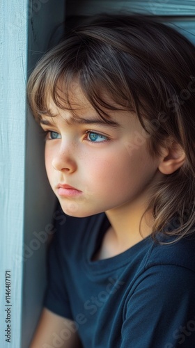 portrait, children, innocence, contemplative, window, melancholy, youth, vertical, natural, lighting, face, childhood, pensive, emotional, thoughtful, pure, beauty, expression, sorrowful, indoor, gentle, dreamy, quiet, mood, closeup, young, profile, dramatic, innocent, dark, serious, peaceful, calm, atmosphere, candid, authentic, genuine, real, lifestyle, human, simple, minimal, photo, artistic, emotion, look, gaze, watching