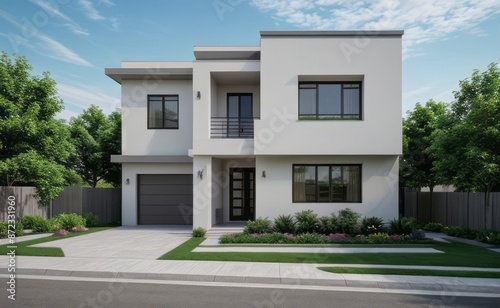 A Contemporary Dwelling with Stylish Architecture, Beautiful Exterior Design, and a Serene Garden Setting. Perfect Family Home in a Residential Neighborhood, Featuring Thoughtful Construction