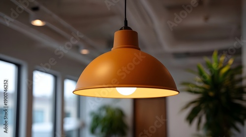 lamp, light, orange, pendant, interior, modern, bright, illumination, warm, fixture, glow, shade, bulb, ceiling, design, decor, style, contemporary, studio, office, cafes, eatery, space, clean, simple, functional, hanging, overhead, yellow, white, energy, sharpened, comfort, cosy, warmth, shine, glasses, window, plant, greenery, dome, matte, industrial, retro, element, home, business, work, technology